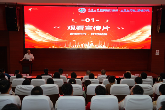 开学典礼上还观看了重庆市黔江区的宣传片和重庆市黔江中心医院的宣传片,让同学们对黔江区和医院有了更深入的了解。开学典礼结束后,向志钢为全体同学主讲了题为“深入学习贯彻习近平新时代中国特色社会主义思想,做时代好青年”的第一堂党课,嘱托同学们珍惜大学时光,坚守医者信念,牢记“健康所系,性命相托”的医员工誓言,增强服务中华民族伟大复兴的责任感与使命感,立志做新时代好青年。