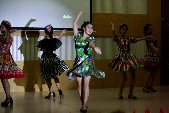 晚会以来自新疆的同学带来的民族舞蹈开场,其曼妙的舞姿让人意犹未尽。