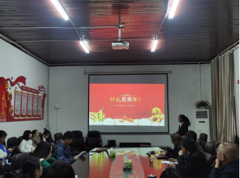 图为教工第二党支部陈晓洁宣讲