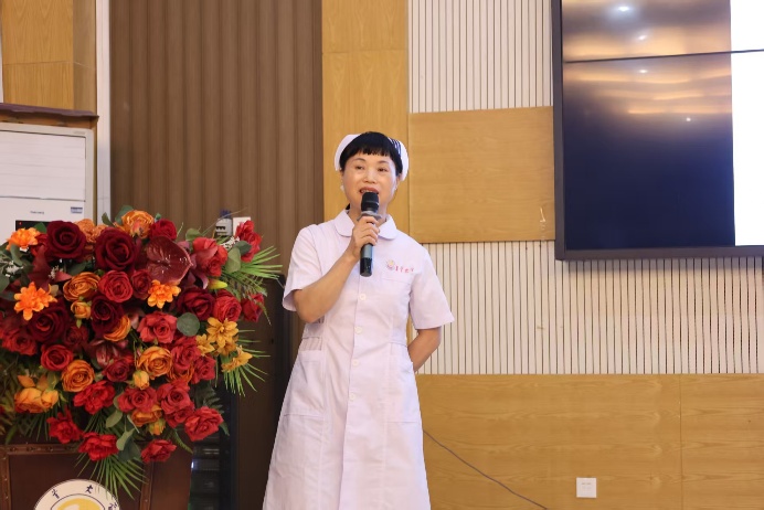 接下来,由李春梅为护理学子寄语。她强调,在护理工作中,要把患者生命摆在第一位,要将规范技术与人文关怀紧密结合,在大数据时代,不要让科技冷度模糊护理人员应有的人文温度。最后,她希望各护理人员永远保持此刻眼中的热爱,带着对科学的敬畏,在未来的学习生活中继续砥砺前行。
