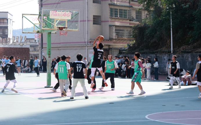 哨声响起,由向志钢开球,双方迅速进入紧张状态。球员们疾跑穿插、抢断如电,起跳投篮划出利落弧度。场上球员们奋斗比拼,场下啦啦队们挥旗振臂,呐喊震彻赛场,点燃属于25届新生的热血青春。