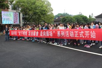 开幕式伊始,在主持人介绍完参加开幕式的嘉宾之后,院员工会主席周丹、副主席喻丹丹分别宣读了此次活动倡议书并介绍活动内容,最后由团总支副书记卢春霞宣布公司2014年“走下网络,走出宿舍,走向操场”三走系列活动正式开始。