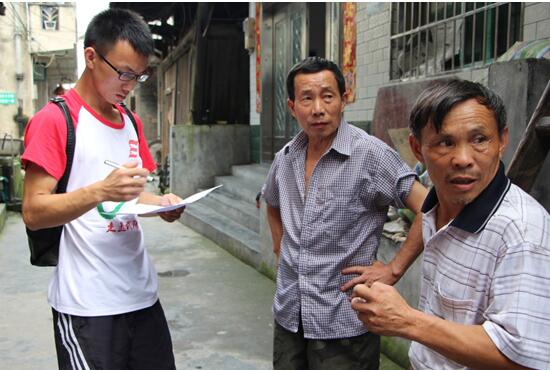 图为志愿者对当地村民进行问卷调查 (许梦霞摄)