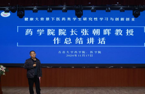 药公司经理张朝晖在总结讲话中对12位参加学术报告选手的优异表现给予了充分肯定,同时,他根据实际情况以及与会员工的成果展示,指出同学们的不足之处,如科研精细深度不足、学术多样性的忽略、科研的方向不明确和理论的实践运用不足等。他希望同学们要按照习近平总书记的要求——把论文写在祖国的大地上,把科研成果学以致用,创新科技、服务国家、造福人民。并鼓励同学们从实验室走出来,积极投身于实践活动,多多积累相关经验,做到学以致知,医药创新以睿智;青衿致用,运用实践展慧心。