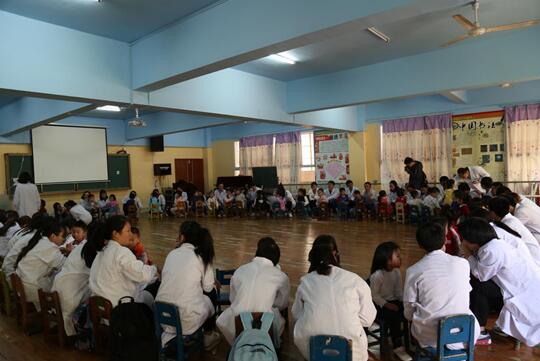 在同学们多日的翘首中,本次活动如约而至。4月13日下午14时,在针灸推拿系主任邓瑜老师、刘氏小儿推拿传承人刘盈盈老师的带领下50名针推学子有组织有纪律地抵达德雅幼儿园。本次活动采取一对一式服务方式,为4-5岁的50名幼儿做益智健体,增强免疫力的小儿推拿保健服务。