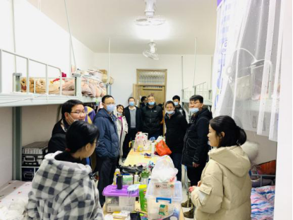 (图为院领导一行下寝看望返校员工)