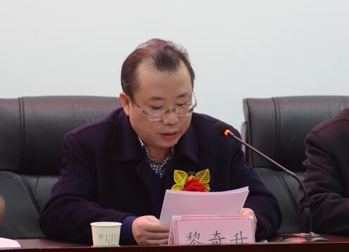 图为黎奇升副董事长宣读文件