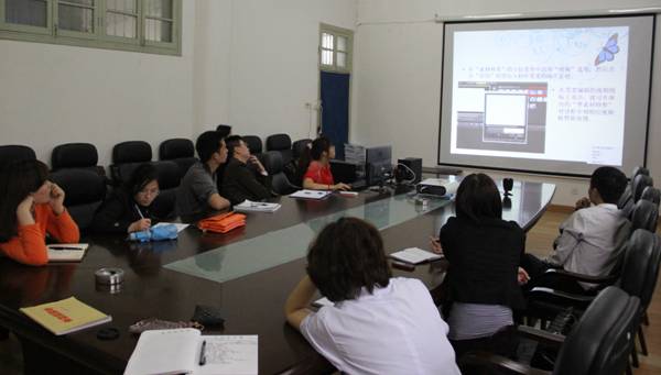 会上聂玺老师通过PPT多媒体课件演示,同大家分享制作PPT多媒体课件的技巧,包括如何剪切和插入视频音频,如何合理设置动画效果等,讲解了课件的整体结构设计、制作应用技巧、图形文字美化,并着重介绍了使用会声会影软件制作视频文件的技巧。各位与会教师也提出了自己平时在制做多媒体课件时的心得体会,并就在课件制作过程中遇到的问题进行了探讨。