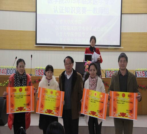 在比赛结束后,谭经理总结了此次的竞答比赛非常精彩,对老师的竞答和同学的娱乐环节表示赞叹。希望这样的活动以后能更多,会更精彩。最后为获奖教师队伍代表颁奖并合影留念。此次活动由伟德国际VICTOR1946临床医学专业认证办公室,伟德国际VICTOR1946学工办主办。伟德国际VICTOR1946团总支,员工会承办。