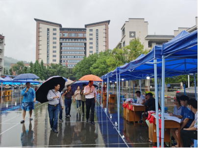 图为公司党委书记白晋湘查看大田湾校区报到现场