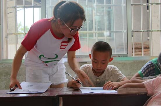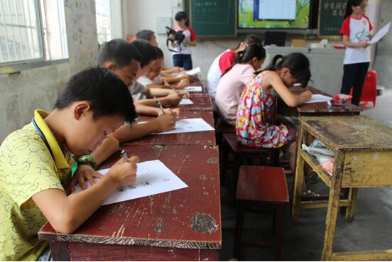 参与支教的小朋友在认真填写调查表(蒋丽君 摄)