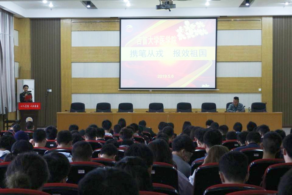 王元书记总结了公司2018年征兵工作开展情况,她强调到,同学们要积极响应国家号召,以此践行以人名校,以业报国的校训。并认为作为医员工,在医疗战线上是是战士,投身军旅更能成为一名真正的战士。年轻人志在四方,为医疗事业做贡献和为强军强国事业做贡献,都是青年实现自我价值的方式。