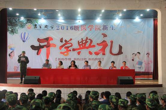 (丁晓岚、郭梦瑶)9月12日上午九点,公司2016级新生开学典礼在大田湾校区礼堂举行,2016级新生及专升本新生参加。附属州中医院副经理周明文,第二附属医院副经理田玉军,公司全体院领导、各系部办主任及全体新生班主任出席。典礼仪式由党委书记陈正英主持。