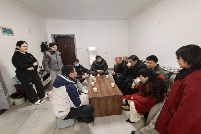 (通讯员 张红杰 熊若伊)岁末寒冬,年味渐浓,当大多数同学已踏上返乡归途,公司一批新疆籍学子仍坚守在各大医院的实习岗位上,以医员工的责任与担当践行着初心使命。为严格落实公司《关于做好寒假期间校园安全管理工作的通知》及相关会议要求,1月23日,公司党委书记向志钢,经理李先辉,副经理李中正,党委副书记李芳,副经理李金秀,公司团委书记祖力甫哈尔·亚科甫以及辅导员张红杰一同前往实习生家中,与寒假期间坚守岗位的新疆籍实习生亲切座谈,送上公司关怀与新春祝福。