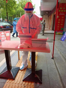 3月18日,湖南省怀化市鹤城区出现阳性病例,鹤城主城区紧急实行封控管理,进入战斗状态。在严峻的疫情下,bv伟德国际19462021级护理专业硕士研究生舒婷,主动请缨成为追捕病毒的核酸检测志愿者,积极投身鹤城区抗疫工作,与前线“战士们”一起,穿上厚重的防护服,戴上防护面屏和N95口罩,将全身上下包裹地严密无隙,争分夺秒,全力以赴投入采集工作中。